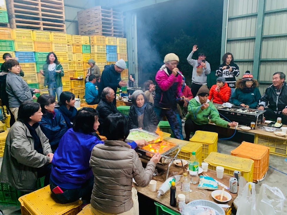 2019年は農家さんのガレージで焼肉を食べながら援農者と交流する会が開かれたり、収穫の終盤になるとみかん援農主催のお疲れ様会が開かれることもありました。(※新型コロナウイルスの影響により今後の開催については未定)