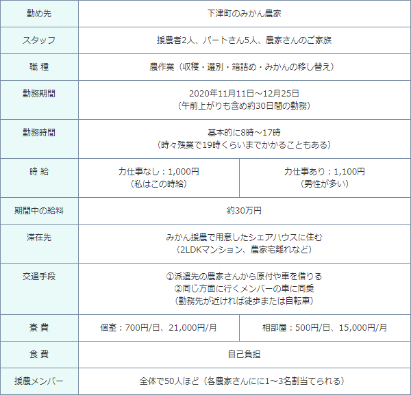 「冬期間の住み込みバイトを探してるけど、みかん援農は稼げる?」