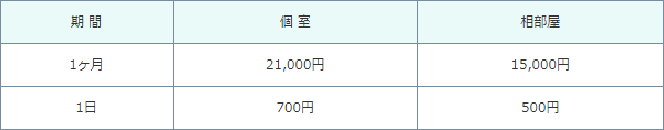 シェアハウスの家賃(水道光熱費込み)は以下の通りです。